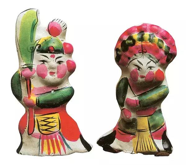 隨著泥塑的品種逐漸增多,有“老虎”“獅子”“猴子”“小狗”“小貓”“雞”“鴨”等動物,也有“白蛇傳”“孫悟空”“牛郎織女”等傳奇故事,并且涂以各種顏色,使其生動活潑。泥塑漸漸展成為一種獨立的手工藝術品。